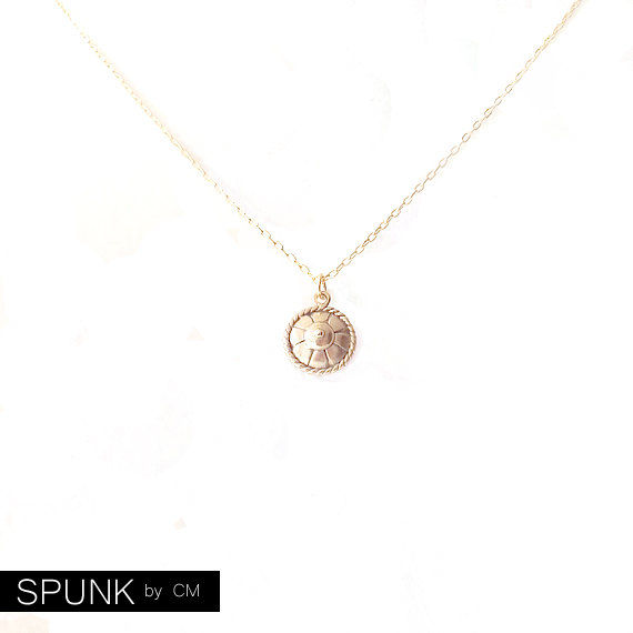 Gold Chain Charm Pendant Necklace - Round Shield - The Basics: Geometric Shield listed in: