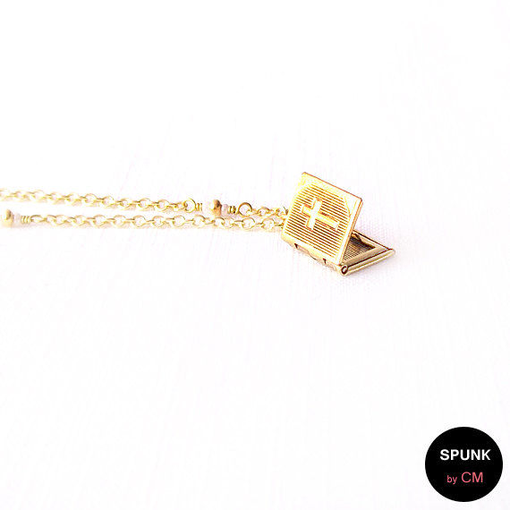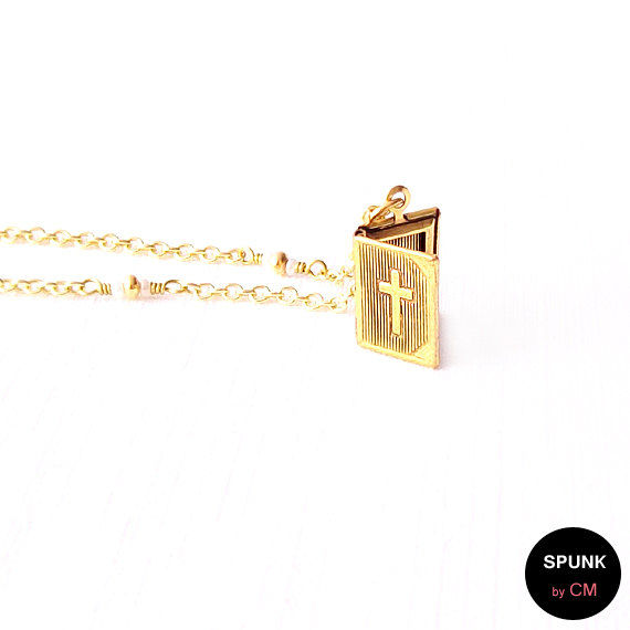 Gold Chain Necklace - Czech Glass Beads, Brass - The Basics: Cross Bible Locket