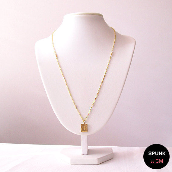 Minimalist Sterling Silver Necklace - Personalized Hand Stamped Tag - The Basics: Rectangle Crossed Arrows Monogram Initial