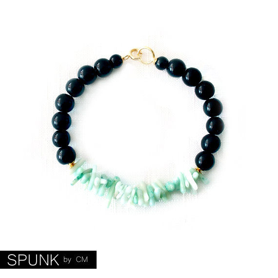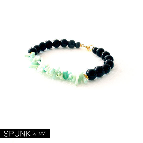Gemstone Shell Gold Bracelet - Obsidian, Magnesite, Coral, Brass - Black, Gold, Mint, Seagreen - The Oceania: Speckled Stone Shell