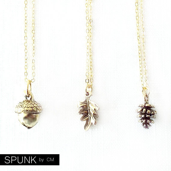This minimalist necklace features a dainty gold chain with autumn flora pendants (i.e. acorn, oak leaf, fir cone). The necklaces are cute and simple, which makes them wonderful everyday necklaces, as well as layering pieces. These necklaces are also available in silver; see our shop for separate listings.